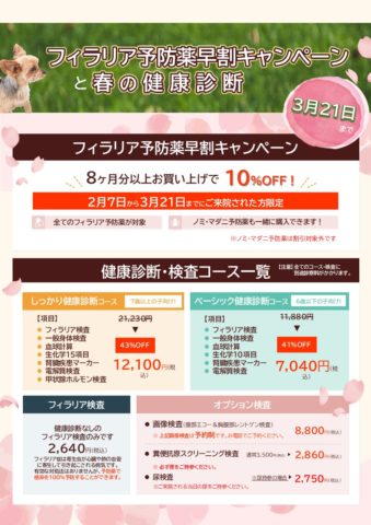 春の健康診断キャンペーン&予防薬の早割キャンペーンのお知らせ